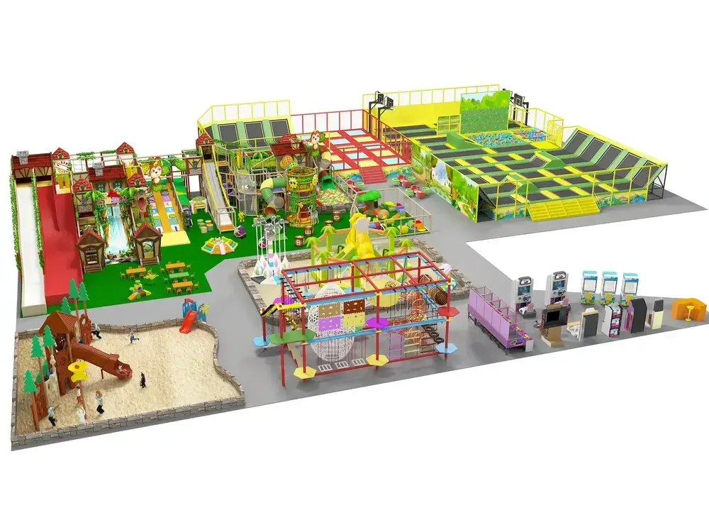 Rodinné dětské zábavní centrum na míru s multi-zónovým konceptem a trampolínami